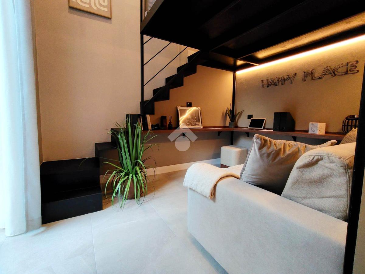 Internamente è composto da : ingresso in cucina, soggiorno, zona notte in soppalco e bagno. Gli spazi sono ottimizzati e rifiniti con attenzione ai dettagli.
